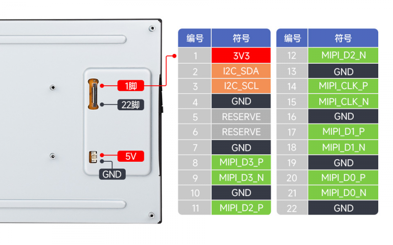 - Use a 22PIN FPC cable to connect the DSI interface of the display to the DSI interface on the Luckfox-Lyra board.