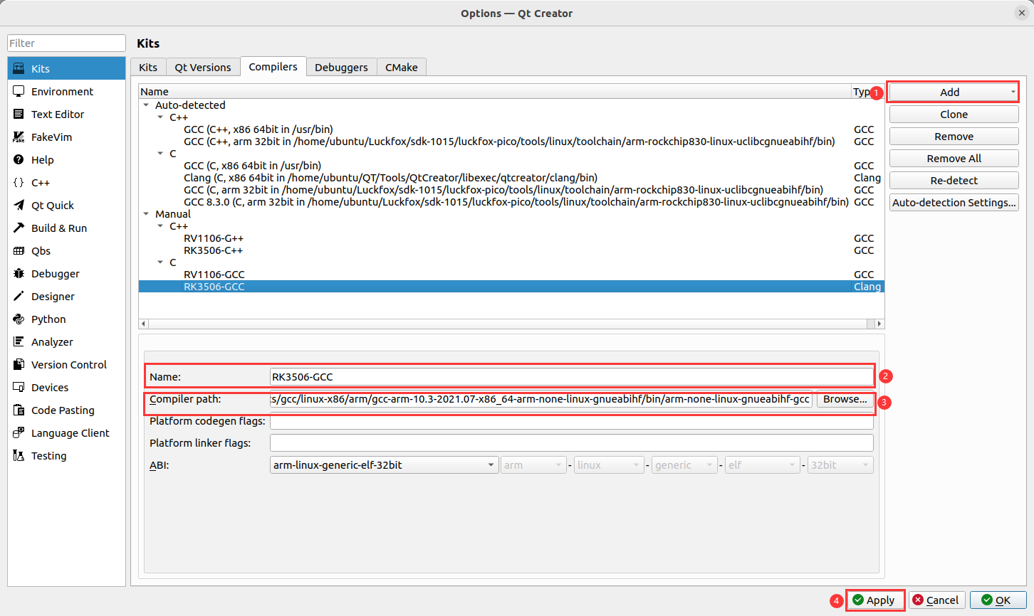 - Open Qt Creator and navigate to Tools > Options > Compilers.