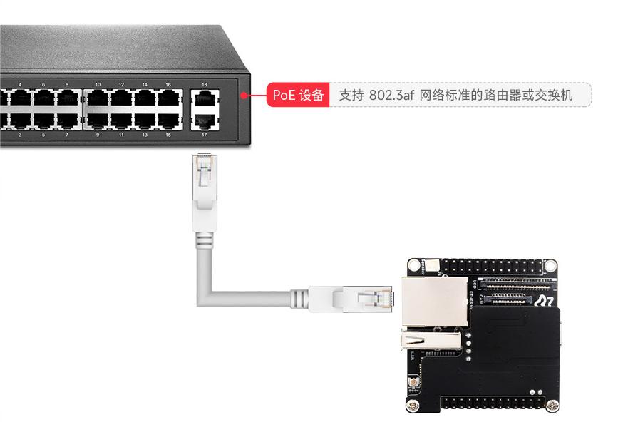 Luckfox-PoE-Module is a Power over Ethernet (PoE) mini expansion board for Luckfox Pico Ultra/Ultra W, supporting the IEEE 802.3af network standard. To enable network connectivity and power for Luckfox Pico Ultra/Ultra W, a PoE router or switch supporting the IEEE 802.3af standard must be used, and the expansion board must be connected via an Ethernet cable.