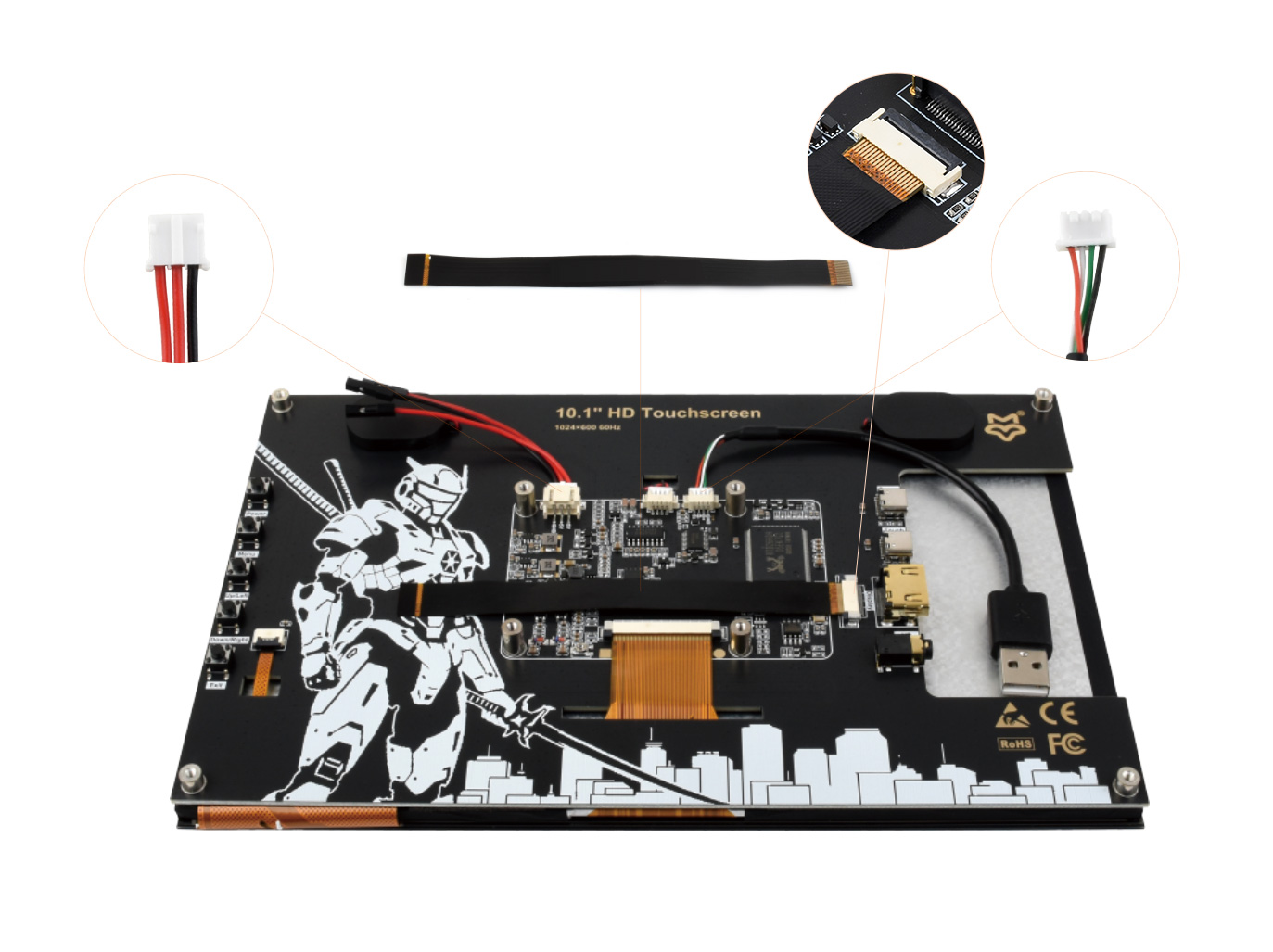 10.1'' HD Touchscreen是一款具有1024×600分辨率和170°广角视野的电容触摸屏,自带固定M2.5螺丝孔位和软排线,节省安装空间,并且兼容大多数标准HDMI设备,满足各种应用需求。