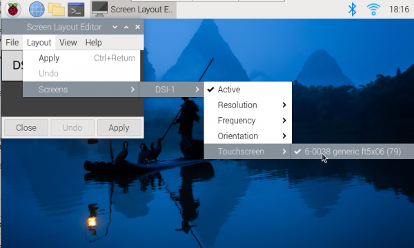 2.进入"Screen"->"DSI-1"->"Touchscreen",勾选"6-0038 generic ft5x06(79)"