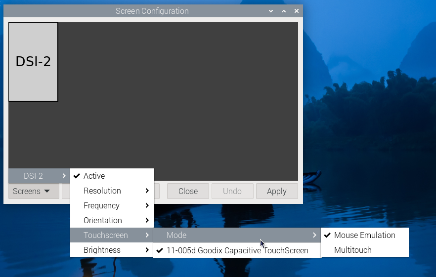 Bookworm系统支持两种触控模式,可在 Screen Configuration > Touchscreen 菜单中切换: