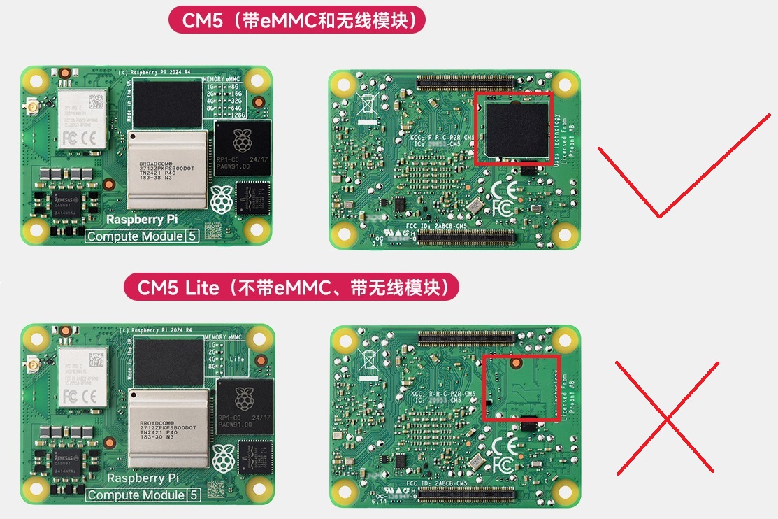 - 确定你的Compute module版本是否正常,eMMC会多一颗IC。只有eMMC版本的,才可以通过当前方式烧录。