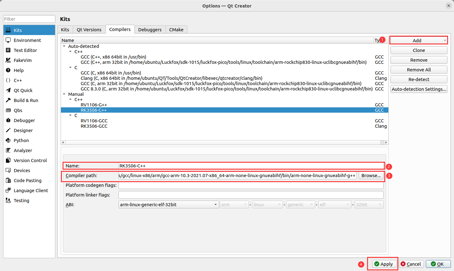 - 添加 3506 G++ 名称和编辑器路径。