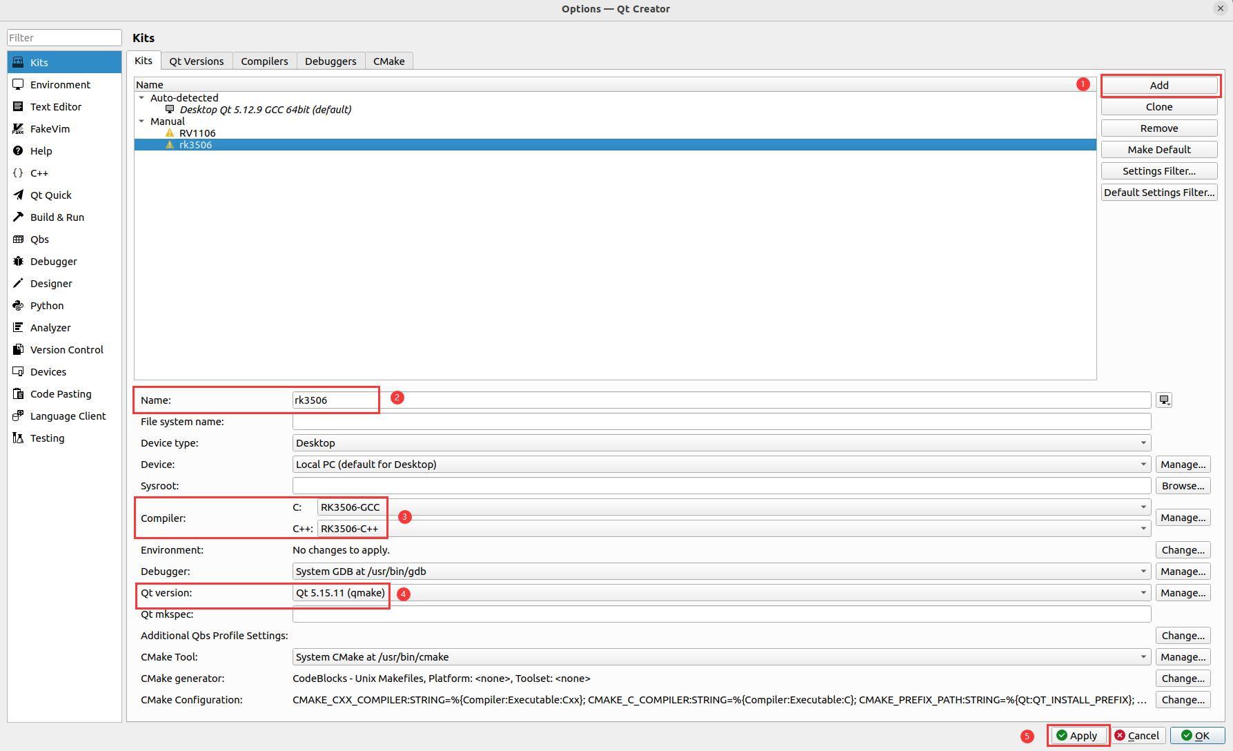 - 设置 Qt Versions