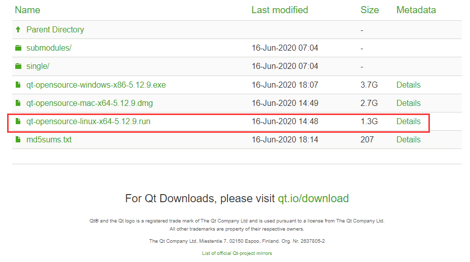 chmod +x qt-opensource-linux-x64-5.12.9