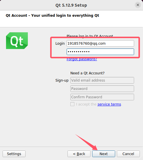 https://login.qt.io/login将下载的安装包传输到 Ubuntu 主机或者虚拟机上,如果未注册 Qt 登录账号,需要断开网络安装可以跳过账号登录。
