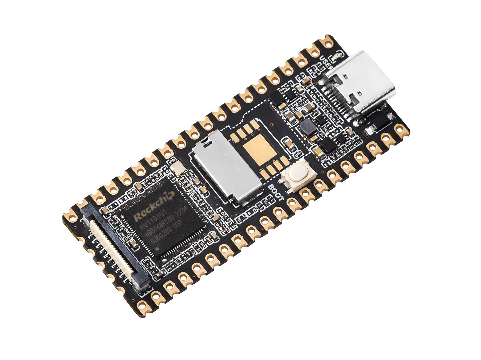 Luckfox Pico RV1103 系列包括 Luckfox Pico、Luckfox Pico Mini A/B、Luckfox Pico Plus 和 Luckfox WebBee 共五个版本。该系列核心处理器 RV1103 是一款专为人工智能应用设计的高集成度 IPC 视觉处理 SoC,基于单核 ARM Cortex-A7 32 位架构,集成 NEON 和 FPU,内置 NPU 支持 INT4/INT8/INT16 混合精度运算,计算性能可达 0.5 TOPS。RV1103 搭载全新硬件级 ISP,集成多种图像处理加速模块,包括 HDR、3A、LSC、2D/3D 降噪、锐化、去雾和伽马校正等。同时内置 16 位 DDR2 DRAM、音频编解码器、MAC PHY 和上电复位模块(POR),在保障性能的同时优化系统资源。