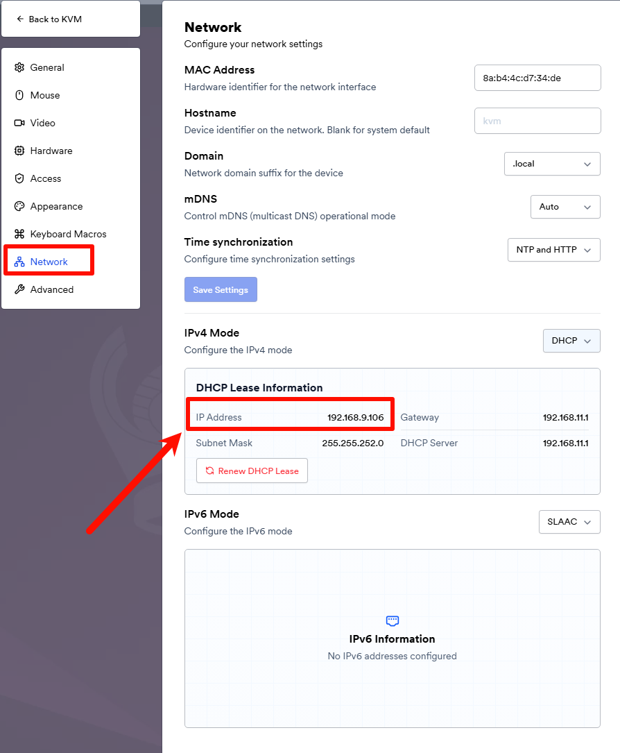 Base 版:可在浏览器中访问 http://picokvm.local/ (需关闭代理)获取 IP 地址;也可通过串口登录系统,在命令行执行 ifconfig 查看。