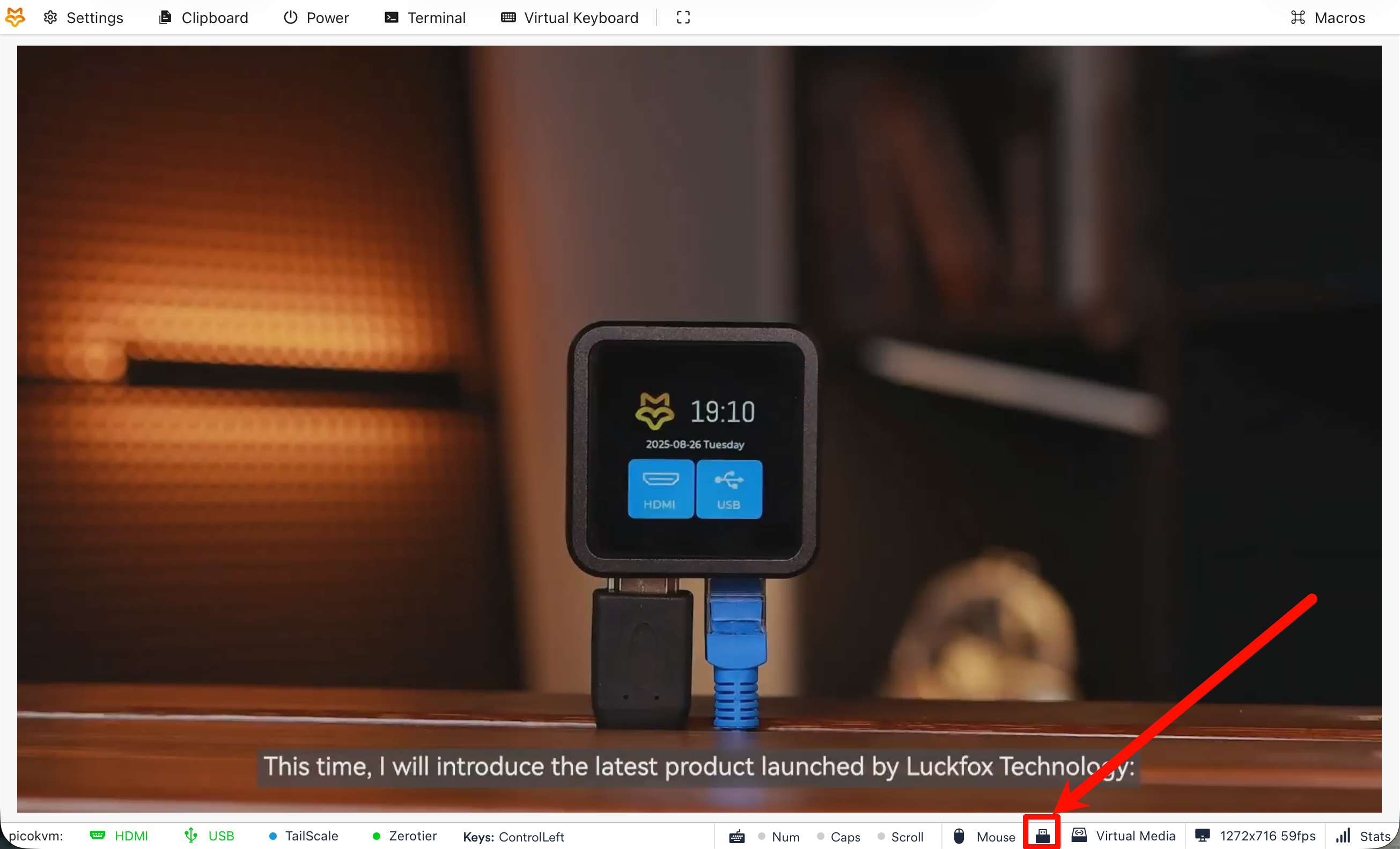- 打开 KVM Web 管理界面,点击页面右下角的